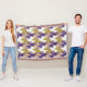Graphic birds seamless pattern. Tesselation with cute birds in white (customizable color), purple and golden tones. Customizable throw blanket. You can easily change size position of the design (scaling) and change color background (here white). Don't forget the whole collection of Animals tesselation (dog, rabbit...).