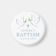 Dove and Christian cross baby boy baptism keepsake fridge magnet in blue and white. Elegant guest favors.