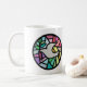 The original design for this piece is in hand cut paper. It makes a lovely colorful mug carrying a message of peace.