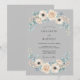 This design features a sophisticated palette of dove grey, soft blush, and muted sage. Delicate watercolor illustrations of cream anemones and pale peach roses create a serene and elegant atmosphere. Silvery eucalyptus leaves and golden-tinged berries add depth and texture to the floral arrangements. Perfect for a refined seasonal event, the artwork captures a sense of timeless beauty and quiet grace.