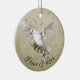 Lightweight, smooth, pure white ornament with nice sheen. Perfect size to be seen from across the room ... and to attract closer inspection! Price was great for ordering enough for the whole family! Clear, bold black design just as requested. Matches the order exactly. Just so nice!