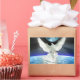A white Dove of Peace spreads its wings above the blue horizon of Planet Earth with a neon blue moon in the background. The sunrise shines at the rim of the world and light rays bathe the Earth. This is a beautiful design to promote world peace and unity for the New Year, Earth Day, or for any occasion. For Christians, the Dove is a symbol of the Holy Spirit, Spirit of Peace, or Spirit of God.