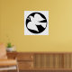 A white silhouette of the peace dove against a circle of black. In its beak, it carries an olive branch. An ancient peace sign, its message the same today as yesterday.