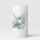 This pillar candle is shown with a watercolor art print of a lovely dove.