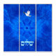 Features "shalom" (Hebrew "peace") and a dove carrying a bit of olive branch in its beak on a nice blue and white fractal background featuring a Star of David and the suggestion of bird wings or clouds.