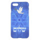 Features "shalom" (Hebrew "peace") and a dove carrying a bit of olive branch in its beak on a nice blue and white fractal background which is reminiscent of birds wings.