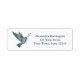 A holiday address label with a watercolor style dove holding a branch on a white background. The dove is in soft pastel shades of blue and green.