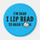 Slogan i 'm deaf, i lip read to hear you. Ik ben doof, ik lees lippen om je te horen. Ik kan je niet horen je niet. Limited hearing. slechthorend, doofheid symbool, dat het gehoorverlies aangeduid. Beperkt horen, zo ben je bijvoorbeeld zichtbaar op straat, op school, op het werk, op reis of tijdens het sporten! Iedereen begrijpt het Limited hearing bordje. Welke taal je ook spreekt. Verander de achtergrond kleur naar wens.