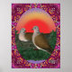 A pair of nesting ringneck doves is set off by a vibrant sky. The design gives an almost vintage look to the artwork.