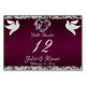 This romantic design features an elegant plum background with glitter borders, heart & doves with a place for the table number, couple's names and date of event. Available in several colors for your wedding theme. (Glitter is simulated in the artwork). Designed to coordinate with the "Two Shall Become One - Doves, Heart & Glitter" Wedding Collection. To change details, click «Personalize». To move the text or change the text size, font, or color click «Click to customize further».