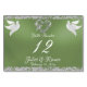 This romantic design features an elegant sage green background with glitter borders, heart & doves with a place for the table number, couple's names and date of event. Available in several colors for your wedding theme. (Glitter is simulated in the artwork). Designed to coordinate with the "Two Shall Become One - Doves, Heart & Glitter" Wedding Collection. To change details, click «Personalize». To move the text or change the text size, font, or color click «Click to customize further».