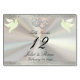 This romantic design features an elegant white pearl background with ribbon borders, linked hearts & doves with a place for the table number, couple's names and date of event. Available in several colors for your wedding theme. (Ribbon is simulated in the artwork). Designed to coordinate with the "Two Shall Become One - Silver & Gold" Wedding Collection. To change details, click «Personalize». To move the text or change the text size, font, or color click «Click to customize further».