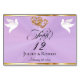 This romantic design features an elegant lavender pearl background trimmed with thin gold ribbon, linked hearts & doves with a place for the table number, couple's names and date of event. Available in several colors for your wedding theme. (Ribbon is simulated in the artwork). Designed to coordinate with the "Two Shall Become One - Silver & Gold" Wedding Collection. To change details, click «Personalize». To move the text or change the text size, font, or color click «Click to customize further».