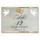 This romantic design features an elegant sage pearl background trimmed with thin gold ribbon, linked hearts & doves with a place for the table number, couple's names and date of event. Available in several colors for your wedding theme. (Ribbon is simulated in the artwork). Designed to coordinate with the "Two Shall Become One - Silver & Gold" Wedding Collection. To change details, click «Personalize». To move the text or change the text size, font, or color click «Click to customize further».