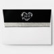 This design features doves on an elegant black background on the inside flap, borders on front with heart monogram & ribbon on back flap. (Ribbon is simulated in artwork - not real ribbon). Personalize the return address on front and monogram on flap, the doves on inside flap can easily be replaced or removed if prefer. Available in several colors for your wedding theme. Designed to coordinate with the "Two Shall Become One - Silver & Gold" Wedding Collection. To change details, click «Personalize». To move the text or change the text size, font, or color click «Click to customize further»