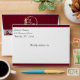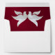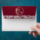 This design features pearl doves on a burgundy background on the inside flap, borders on front with a leaf monogram & glitter on back flap. (Glitter is simulated in artwork - not real glitter). Personalize the return address on front and the doves on inside flap can easily be replaced or removed if prefer. Available in several colors for your wedding theme. Designed to coordinate with the "Two Shall Become One - Hearts, Doves & Glitter" Wedding Collection. To change details, click «Personalize». To move the text or change the text size, font, or color click «Click to customize further»
