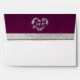 This design features doves on a purple background on the inside flap, borders on front with heart monogram & ribbon on back flap. (Ribbon is simulated in artwork - not real ribbon). Personalize the return address on front and monogram on flap, the doves on inside flap can easily be replaced or removed if prefer. Available in several colors for your wedding theme. Designed to coordinate with the "Two Shall Become One - Silver & Gold" Wedding Collection. To change details, click «Personalize». To move the text or change the text size, font, or color click «Click to customize further»
