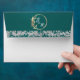 This design features pearl doves on a teal background on the inside flap, borders on front with a leaf monogram & glitter on back flap. (Glitter is simulated in artwork - not real glitter). Personalize the return address on front and the doves on inside flap can easily be replaced or removed if prefer. Available in several colors for your wedding theme. Designed to coordinate with the "Two Shall Become One - Hearts, Doves & Glitter" Wedding Collection. To change details, click «Personalize». To move the text or change the text size, font, or color click «Click to customize further»