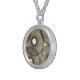 I chose gold plated so that the metal would not react with my skin oils and perspiration. But, I changed the necklace from the gold plated one to a sterling silver. My skin cells will tarnish the silver. But it will not look as bad if some portion of the gold plated necklace somehow became compromised. Zazzle did a find job turning the picture into a pendant for me. As you can see, the colors and the printing of the final product, match the preview. The picture I took is not very clear. But I am pleased with the product I received.