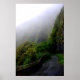 Mountainside draped with grey clouds at the Nuuanu Pali State Park on island of Oahu in Hawaii.