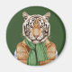 This design features a tiger winter ready wearing his down vest, green knit scarf and Christmas sweater.
