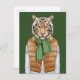 This design features a tiger winter ready wearing his down vest, green knit scarf and Christmas sweater.