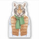 This design features a tiger winter ready wearing his down vest, green knit scarf and Christmas sweater.