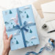 Downhill Skier On Blue with Snowflakes Wrapping Paper