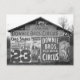 A barn covered in advertising posters for the Downie Bros. Circus. 1936.