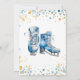 This ice-skating birthday party thank you card is part of a matching set of birthday party accessories. Your birthday kid is going to enjoy every moment of her special day. This design features the various shades of blue and gold, along with easy-to-read fonts, and plenty of space to add all of your unique information. For any special design needs, feel free to contact the designer, by sending an email to choosehappystudio@yahoo.com