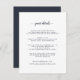 Designed to coordinate with our classic Ampersand Monogram wedding collection, this elegant wedding enclosure card lists important details for your wedding guests, like welcome receptions, wedding weekend details, accommodations, transportation and your wedding website. You can even upload a map to the reverse side. A simple and timeless design in navy blue and white with calligraphy script accents.