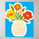 Bold orange, red and yellow flowers in a vase decorate the front of this lovely poster.
