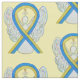 Awareness ribbon fabric material features the painting of a blue and yellow awareness ribbon angel art on a custom repeating fabric print. The yellow and blue awareness ribbon angel art fabric swatch print can be customized with personalized messages to make great cause merchandise or gifts for fundraiser clothing, awareness ribbon quilts, or other special awareness gift items for the cause awareness occasions.
