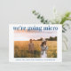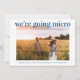 A fresh and cheerful announcement to let your original guest list know that circumstances have required you to downsize your wedding. "we're going micro" is written across the top of your favorite engagement photo in bold, clean and modern light classic blue typography, and underneath you can personalize your names and downsizing announcement. On the reverse side, you can personalize your message in more detail and add any livestreaming and wedding website information, all in white typography against a classic blue background.