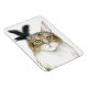 This watercolor print features a cat adorned with feathers and jewels | By Grace Popp