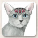 This watercolor print features a gray cat adorned with jewels | By Grace Popp