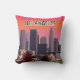 Colorful vector illustration featuring a gorgeous skyline dominated by skyscrapers and palm trees from downtown Los Angeles with a beautiful Californian sunset in the background.