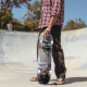 Skateboard featuring a street scene photo looking towards the Springfield Missouri downtown square. Park Central Street is part of the Historic Route 66, which you can see the historical sign on the street light to the right.