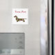 Great Dachshund lover magnet, with a colorful flower decorated brown Dachshund and text above reading, Doxies Rule. Great little gift magnet for any wiener dog lover.