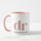 Celebrate professional achievements in style with this sleek and modern "dr" mug, featuring bold typography and a customizable name beneath. The light pink and white design, accented with a contrasting pink interior and handle, makes it a perfect gift for doctors, PhDs, or anyone with a well-deserved title. Whether for a graduation, promotion, or just as a thoughtful token of recognition, this personalized mug is a chic and meaningful way to honor hard work and success. 💡 How to Customize: - Click "Personalize this template" to add the name. - Want more changes? Choose "Edit using Design Tools" to adjust font type, color, or layout.