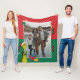 This blanket is perfectly balanced between Christmas cheer and holiday mischief! This fun, cozy custom photo blanket is framed with a bold red and green diagonal stripe pattern and features a large center space for your favorite family photo. Standing watch is the full-body grumpy Grinch in his Santa hat, pointing and looking suspicious! With cheerful presents and stockings decorating the frame, this blanket is the perfect whimsical gift for staying warm while embracing your inner curmudgeon!