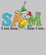 Don't knock it until you try it, you might just like it! GREEN EGGS AND HAM is a classic Dr. Seuss story where Sam-I-Am tries to get his friend to try some green eggs and ham, and he does indeed end up loving them. Check out Sam-I-Am holding up a sign with his name on it.