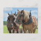 A photo of two draft horses, one bay and one chestnut, taking a break at a plowing (ploughing) competition.