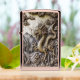 A majestic, golden dragon ascends a mountain peak, its scales gleaming under a swirling sky. The intricate carving captures the creature's power and grace.
