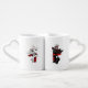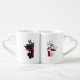 Black, white and red dragon couple holding hearts on heart handled nesting mugs