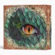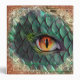 This enchanting custom binder features a mythical fantasy theme. A large dragon eye is pictured in the center, surround by glowing scales. Gold foil and faux copper glitter accent the image.