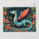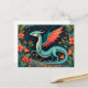 A little blue-green dragon in a midnight jungle with bright orange flowers makes a very cute and fun fantasy post card.
