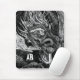 A dragon lurks in a cave deep underground. Mousepad with a black and white customizable design for you to personalise with your choice of initial letters. An original ink drawing by Jess Perry.