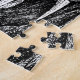 A dragon lurks in a cave deep underground. Jigsaw puzzle with a black and white customizable design for you to personalise with your own text, pictures and ideas. An original ink drawing by Jess Perry.