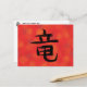 The calligraphy was handwritten by me on a tablet. The red on the postcard gives the impression of a dragon breathing fire. The watercolor style background adds a peaceful vibe without taking away from the gracefulness of the kanji. On the back is the meaning of the kanji, to show your friends what you know!